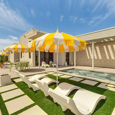Die Villa in Palm Springs ist mit einer Mikrowelle, einem Kühlschrank und Küchenutensilien für die Selbstversorgung in einen Essbereich im Freien ausgestattet. Als ideale Rückzugsmöglichkeit stellt diese Villa sowohl einen Swimmingpool als auch einen Whirlpool zur Verfügung.